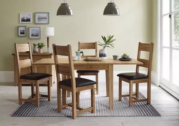 48 x 72 with leaf. A pub table, with two drop leaves, and two stools. Mobel solid modern oak furniture extending dining table and six slate chairs set. Shop our selection of dining room furniture sets including; Well you're in luck, because here they come.